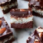 These Almond Joy Brownies combine rich, fudgy chocolate brownies with a luscious coconut layer, topped with creamy chocolate ganache and crunchy almonds. A decadent treat inspired by the classic Almond Joy candy bar, perfect for chocolate lovers who enjoy a mix of textures and flavors.