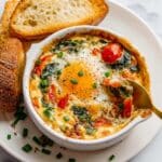 Baked Feta Eggs combine creamy feta cheese with vibrant roasted vegetables and perfectly baked eggs for a comforting and flavorful breakfast or brunch. This dish is easy to prepare and makes a beautiful, shareable meal.