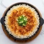 - Serve: Remove the crispy rice from the skillet and transfer to a serving platter. Garnish with additional sliced scallions if desired, and enjoy immediately.