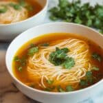 Store leftover soup in an airtight container in the refrigerator for up to 3 days. Reheat gently on the stovetop to avoid overcooking the noodles. You can also freeze the broth and chicken separately for up to 3 months; add fresh noodles when reheating for best texture.