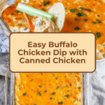 Keywords: Buffalo chicken dip, canned chicken dip, party appetizer, buffalo dip, cheesy chicken dip, game day recipes
