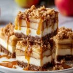 Keywords: caramel apple cheesecake bars, apple dessert bars, creamy cheesecake bars, spiced apple dessert, crumble topping, caramel drizzle