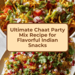 Chaat Party is a vibrant and interactive Indian snack recipe featuring an assortment of crispy crackers, fresh vegetables, fruits, chutneys, and spices. Guests customize their own flavorful chaat by combining crunchy bases like chakri, chekkalu, and murukku with tangy tamarind and cilantro-mint chutneys, cooling raita, and a burst of fresh lime, making it a perfect festive appetizer or light meal.