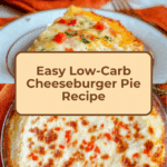 Cheeseburger Pie is a savory, low-carb comfort food that combines ground beef, onions, and a fluffy almond-coconut flour crust topped with gooey melted cheese. This hearty pie is a delicious twist on the classic cheeseburger flavors baked into a satisfying meal perfect for dinner or lunch.