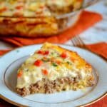 Cheeseburger Pie is a savory, low-carb comfort food that combines ground beef, onions, and a fluffy almond-coconut flour crust topped with gooey melted cheese. This hearty pie is a delicious twist on the classic cheeseburger flavors baked into a satisfying meal perfect for dinner or lunch.