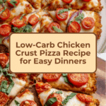 This Chicken Crust Pizza offers a low-carb alternative to traditional pizza by using ground chicken as the base. Topped with marinara sauce, fresh mozzarella, tomato slices, and basil, it’s a flavorful and protein-packed meal that’s perfect for a healthy dinner or lunch.