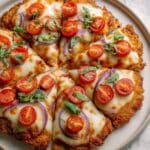 This Chicken Crust Pizza offers a low-carb alternative to traditional pizza by using ground chicken as the base. Topped with marinara sauce, fresh mozzarella, tomato slices, and basil, it’s a flavorful and protein-packed meal that’s perfect for a healthy dinner or lunch.