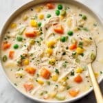 Keywords: Chicken pot pie soup, creamy chicken soup, comfort food, easy chicken soup, one pot meal, rotisserie chicken recipe