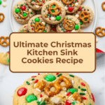 These Christmas Kitchen Sink Cookies are a festive, fun, and delicious treat packed with a colorful and crunchy mix of M&M’s, white chocolate chips, pretzels, potato chips, and red and green sprinkles. Soft, chewy, and slightly crispy around the edges, these cookies bring together sweet, salty, and crunchy flavors in every bite—perfect for holiday celebrations or anytime you want a joyful cookie experience.