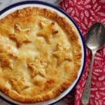 - Add decorative pastry: Optionally, re-roll any leftover pastry, cut out festive shapes like stars, and stick them to the top of the pie. Brush these decorations with extra egg wash to help them brown nicely.
