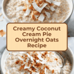 This Coconut Cream Pie Overnight Oats recipe is a delicious and convenient make-ahead breakfast that combines creamy coconut milk, Greek yogurt, and shredded coconut with rolled oats. Naturally sweetened with maple syrup and flavored with vanilla and cinnamon, these oats soak overnight to create a luscious, pie-inspired morning treat. Optional banana slices add natural sweetness and texture, while a topping of fresh whipped cream and extra shredded coconut delivers a delectable finish.