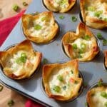 - If you don’t have a mini muffin tin, use a regular muffin tin and carefully shape the wonton wrappers to fit bigger cups; bake a bit longer until golden and crispy.