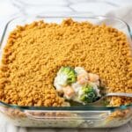 - Bake: Bake the casserole in a preheated oven at 350°F (175°C) for 45 to 50 minutes, or until the casserole is bubbly and the crumb topping turns a light golden brown.