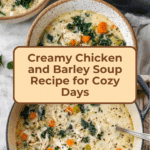 This Creamy Chicken and Barley Soup is a comforting and hearty meal perfect for any day. Packed with tender chicken, wholesome barley, and fresh vegetables, it’s a nourishing bowl of warmth and flavor. The addition of cream and fresh herbs elevates it to a satisfying and delicious dinner option.