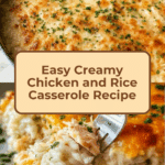 This Creamy Chicken and Rice Casserole is a comforting, all-in-one dish perfect for busy weeknights. It combines tender chicken, creamy sauce, and cheesy goodness baked to perfection. Simple to prepare and sure to please the whole family.