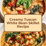 This Creamy Tuscan White Bean Skillet is a quick and comforting dish perfect for busy weeknights. It combines tender white beans, sun-dried tomatoes, and fresh spinach in a luscious creamy sauce that’s full of flavor.