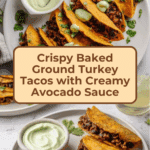 These Crispy Baked Ground Turkey Tacos with Avocado Sauce offer a delicious twist on classic tacos. Featuring a flavorful turkey and black bean filling baked with melted cheese inside crispy tortillas, paired with a creamy avocado sauce, they make for a satisfying and easy meal.