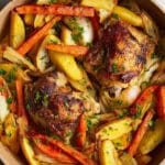 A deep casserole pot or Dutch oven with a tight-fitting lid works best to retain moisture and evenly roast the ingredients. If you don’t have one, a deep ovenproof roasting pan covered tightly with foil can work as well.