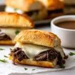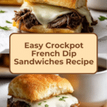 Crockpot French Dip Sandwiches are a comforting and flavorful meal perfect for busy days. Tender, slow-cooked beef piled high on crusty rolls with melted cheese makes for an irresistible sandwich. Plus, the savory au jus dipping sauce takes it to the next level.