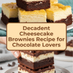 These Decadent Cheesecake Brownies combine rich, creamy cheesecake with fudgy chocolate brownies for a luscious dessert experience. Featuring a smooth cheesecake layer swirled into a moist, chocolatey brownie base, this recipe is perfect for anyone craving a sophisticated twist on classic brownies.