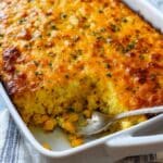 This Easy Corn Casserole is a creamy, cheesy side dish bursting with sweet and savory corn flavors. Made with creamed and whole kernel corn, a blend of spices, and pepper jack cheese, it comes together quickly and bakes into a golden, comforting casserole perfect for family dinners or holiday gatherings.