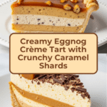 Indulge in this rich and creamy Eggnog Crème Tart featuring a flaky buttery shell, smooth eggnog-flavored custard filling, and crunchy homemade caramel shards. Perfect for festive occasions, this tart combines warm spices like nutmeg and cinnamon with a hint of vanilla and optional dark rum or bourbon for a sophisticated holiday treat.