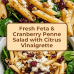 A refreshing and vibrant feta and cranberry penne salad tossed with baby spinach, toasted walnuts, and a zesty orange vinaigrette. This easy-to-make pasta salad balances sweet, tangy, and savory flavors, perfect for light lunches, picnics, or as a colorful side dish.