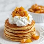 Fluffy Spiced Pancakes with Caramel Apple Compote is a delightful breakfast treat perfect for cozy mornings. These soft, cinnamon and nutmeg-infused pancakes are enhanced with grated apple for moisture and texture, then topped with a warm, sweet caramel apple compote made from sautéed diced apples simmered in brown sugar, maple syrup, and spices. A perfect balance of sweet and spiced flavors that brings autumn vibes to your skillet.