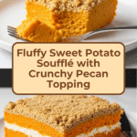 This Fluffy Sweet Potato Soufflé is a delightful, sweet casserole featuring smooth mashed sweet potatoes blended with rich eggs, butter, and warming vanilla, topped with a crunchy pecan streusel. Baked to golden perfection, it’s an ideal side dish for holiday meals or cozy family dinners.