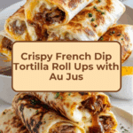 French Dip Tortilla Roll Ups are a creative twist on the classic French dip sandwich, featuring roasted beef, melted provolone cheese, and crispy French fried onions rolled inside a warm flour tortilla. Baked until golden and served with a flavorful homemade beef au jus for dipping, these roll ups make a perfect appetizer or party snack that combines the comforting flavors of a French dip in a fun, handheld form.
