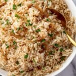 French Onion Rice is a flavorful and comforting side dish made by baking long grain rice with rich French onion soup, beef broth, and buttery pats to create a savory, tender, and aromatic rice dish perfect for pairing with meats or enjoying on its own.