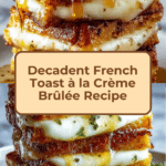 This French Toast à la Crème Brûlée combines the rich custard-soaked bread of classic French toast with the crispy caramelized sugar crust of crème brûlée. Made with brioche or challah bread, soaked in a creamy mixture of eggs, milk, cream, sugar, vanilla, and cinnamon, it’s baked until golden and finished with a brûléed sugar topping for an elegant breakfast or brunch treat.