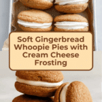 These Gingerbread Whoopie Pies are soft, spiced cookies sandwiched with a creamy cinnamon-vanilla cream cheese frosting, perfect for the holiday season or any cozy occasion. The combination of warm spices like ginger, cinnamon, nutmeg, cloves, and allspice in the cookie pairs beautifully with the sweet, smooth frosting for a delightful treat.
