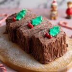 A delightful Gluten Free Yule Log featuring a light cocoa sponge rolled with rich dark chocolate buttercream frosting. Perfect for festive celebrations, this recipe ensures a gluten-free treat that doesn’t compromise on flavor or texture, finished with edible holly for a festive touch.