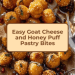These Goat Cheese and Honey Bites are delightful, flaky puff pastry rounds filled with creamy goat cheese, baked to golden perfection and drizzled with sweet honey, then garnished with fresh thyme. Perfect as an elegant appetizer or sophisticated snack, they offer a lovely balance of tangy, sweet, and herbaceous flavors in every bite.