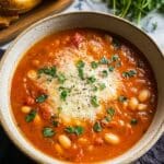 Keywords: tomato soup, cannellini beans, hearty soup, vegan option, vegetarian soup, Italian soup, healthy soup recipes