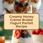 This Honey Crème Brûlée Yogurt Parfait combines creamy Greek yogurt with a rich honey and vanilla flavor, topped with a crunchy caramelized sugar crust and granola for texture. It’s a delightful layered dessert or breakfast treat that’s both indulgent and refreshing.