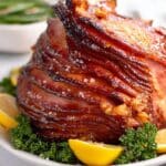 Keywords: baked ham, honey glazed ham, slow cooker ham, holiday ham, spiral sliced ham, brown sugar glaze, spiced ham