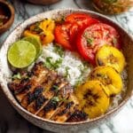 These Honey Lime Chicken & Rice Bowls combine tender, marinated chicken with a vibrant honey-lime sauce, served over fluffy long-grain white rice and topped with corn, black beans, creamy avocado, and fresh cilantro. This quick and flavorful dish perfectly balances sweet, tangy, and savory notes for a satisfying meal that’s easy to prepare any night of the week.
