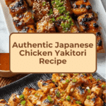 Japanese Chicken Yakitori is a popular grilled skewer dish featuring tender, juicy chicken thighs glazed with a sweet and savory tare sauce made from soy sauce, mirin, sake, and brown sugar. This recipe delivers perfectly grilled chicken bites with optional scallion threading and flavorful garnishes, ideal as a tasty appetizer or main dish.
