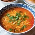 Chorba is a hearty and flavorful North African lamb and vegetable soup, simmered slowly with aromatic spices like turmeric and saffron, chickpeas, tomatoes, potatoes, and broken spaghetti for a comforting, wholesome meal.