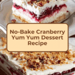 No-Bake Cranberry Yum Yum is a delightfully creamy dessert combining tangy cranberry sauce with a rich cream cheese layer on a spiced graham cracker crust. Perfect for holiday gatherings or any time you want a fuss-free, crowd-pleasing treat.