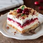 No-Bake Cranberry Yum Yum is a creamy, delightfully textured dessert featuring a crunchy graham cracker crust, smooth cream cheese and whipped cream layers, and a sweet-tart cranberry sauce topping, all topped with a pecan and crumb sprinkle. This easy-to-make, refrigerated treat requires no baking, making it perfect for holidays and gatherings.