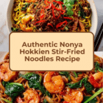 Nonya Hokkien Stir-Fried Noodles is a flavorful, hearty dish that brings together tender pork belly, succulent shrimp, and fresh vegetables tossed with fragrant noodles. This classic Southeast Asian favorite offers a perfect balance of savory, spicy, and aromatic elements that’s sure to satisfy your cravings.