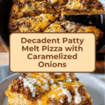 Patty Melt Pizza brings together the best of two classic favorites: a juicy patty melt and a crispy pizza. This unique recipe combines a soft focaccia dough topped with caramelized onions, seasoned ground beef, melty cheeses, and a tangy sauce for a delicious, comforting meal.