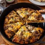 - Final Bake: Return the skillet to the oven and bake for an additional 13–15 minutes until the cheese is bubbly and golden brown.