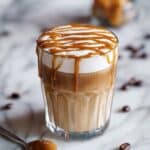 - Pour over ice: Fill a glass with ice cubes and carefully pour the blended peanut butter cold brew mixture over the ice to chill the drink immediately.