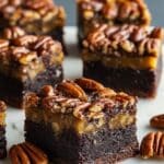 Keywords: Pecan Pie Brownies, brownie recipe, pecan pie topping, chocolate dessert, baking recipe, holiday dessert, fudgy brownies