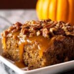Keywords: pumpkin cake, dump cake, oatmeal cake, fall dessert, easy pumpkin recipe, autumn dessert, spiced cake, pecan cake