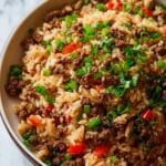 Keywords: dirty rice recipe, ground beef dirty rice, Cajun rice, quick dirty rice, skillet dinner, spicy rice dish